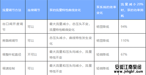 下表中總結(jié)出了各種流量調(diào)節(jié)方法,每種方法各有優(yōu)缺點,應根據(jù)實際情況選用: