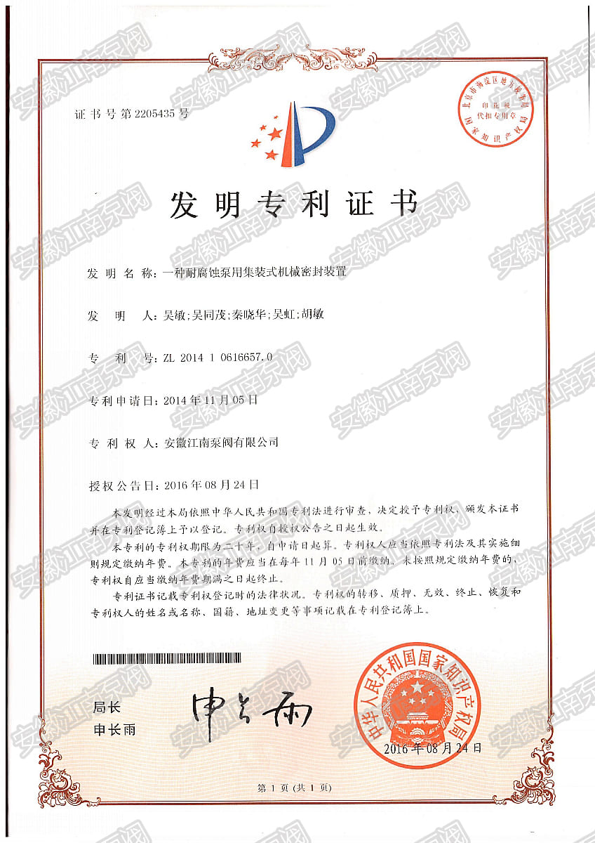 安徽江南泵閥有限公司榮獲耐腐蝕泵集裝機(jī)械密封專(zhuān)利,主營(yíng):氟塑料泵,不銹鋼泵,耐腐蝕化工泵,品質(zhì)卓越,行業(yè)領(lǐng)跑企業(yè),科研生產(chǎn)型企業(yè)20年鑄就行業(yè)輝煌!...